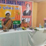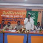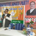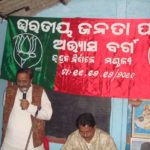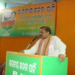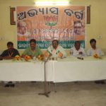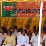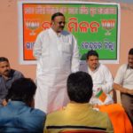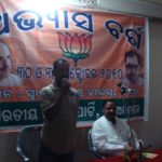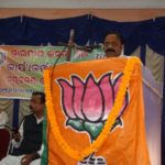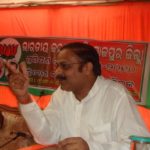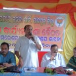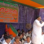 On Oct. 9, 2019, Dr. Murali Sharma at Bhubaneswar in BJP rally against corruption in PMAY house distribution.