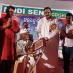 Aging freedom fighter being honoured by the coordinator of Modi Sena, Murali Sharma