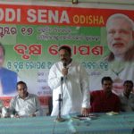Murali Sharma plants tree in the premises of Kuhudi College, Khurda to mark Modi Jayanty